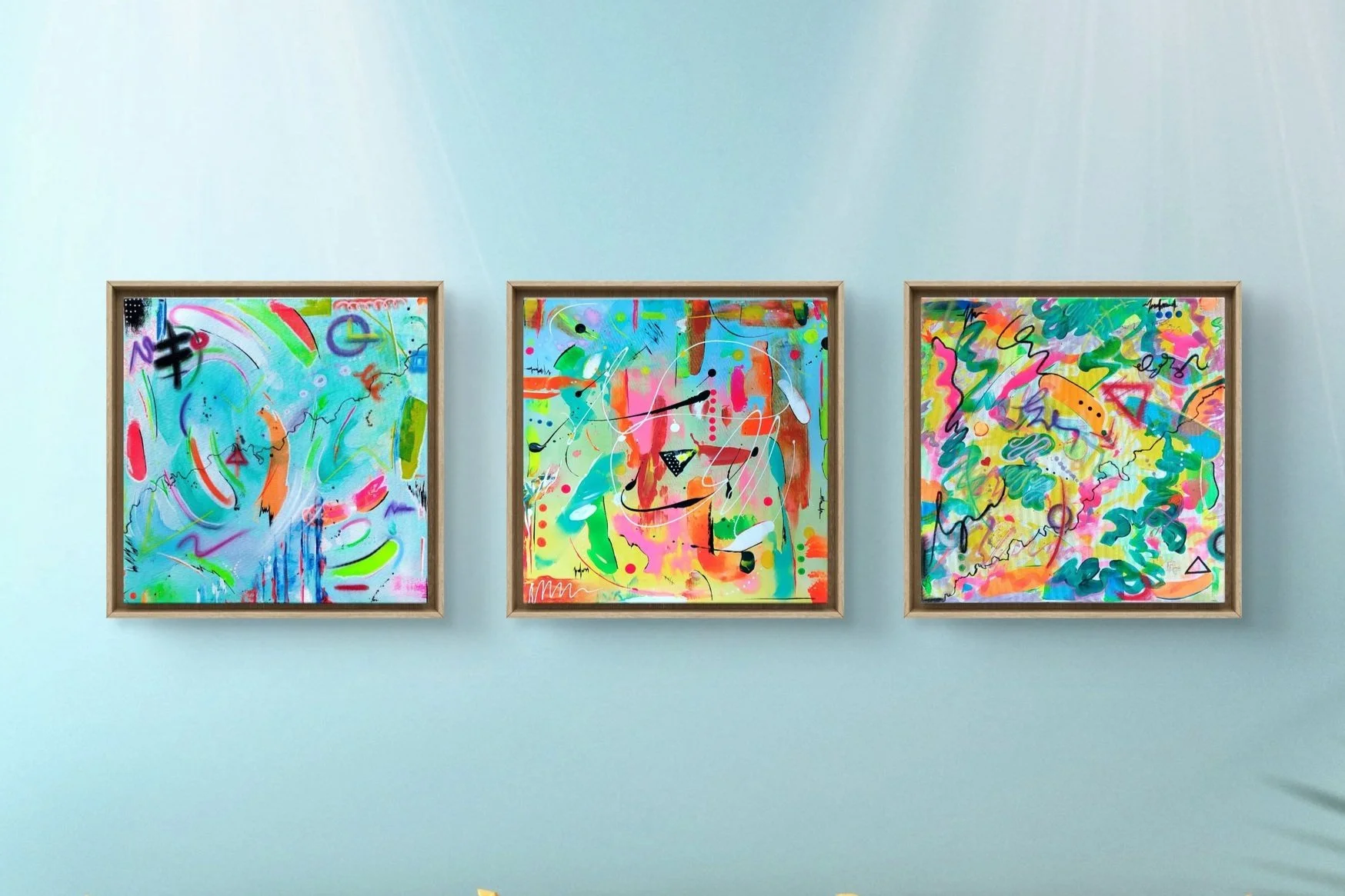 Erschaffe dein eigenes abstraktes Kunstwerk auf naturbelassenen Leinen und spanne es in einen Stickrahmen. so entsteht ein einzigartiges Kunstwerk das du stolz mit nach Hause nehmen oder verschenken kannst.